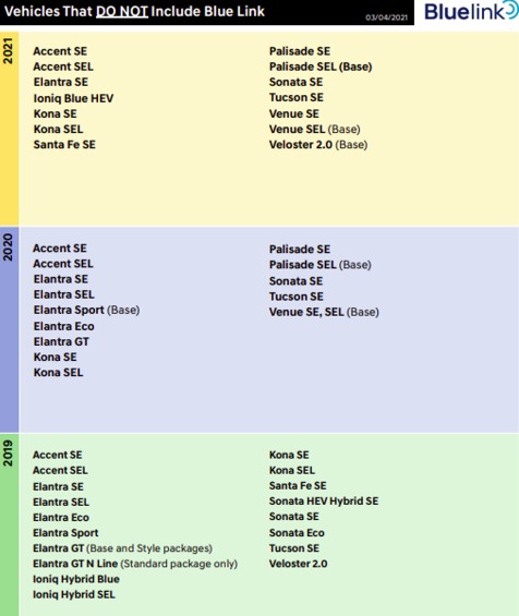 <표: 블루링크 서비스를 제공하지 않는 모델>