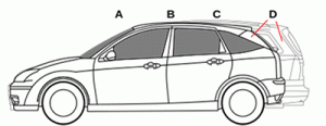 - C필러: 뒷좌석 뒤편에 위치하고 있으며 뒷좌석 탑승자를 보호합니다. 특히 대형 세단의 경우, 뒷좌석에 승차하고 있는 탑승자의 신변을 보호하기 위해 더욱 두껍게 제작되기도 합니다.