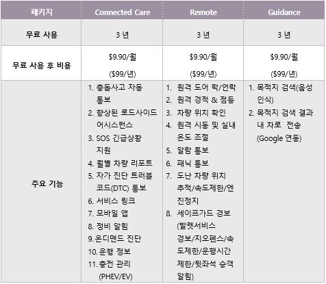 GCS는 3년이 지난 뒤에는 패키지(Connected Care, Remote 및 Guidance)에 따라 $9.90/월 또는 $99/년의 비용이 부과됩니다. GCS 등록은 제네시스 오너 페이지에서 고객이 직접 하거나, 딜러 여러분께서 도와줄 수도 있습니다.