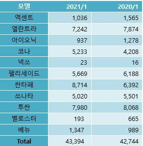 현대자동차(HMA)가 1월 판매량을 늘리며 2021년을 힘차게 출발했습니다.