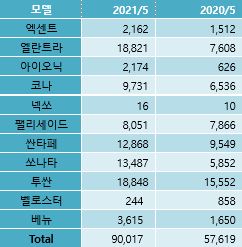 현대자동차(HMA)는 5월에 지난해 같은 기간보다 56% 늘어난 9만 17대를 팔아 3개월 연속 최대 판매를 기록했습니다.
