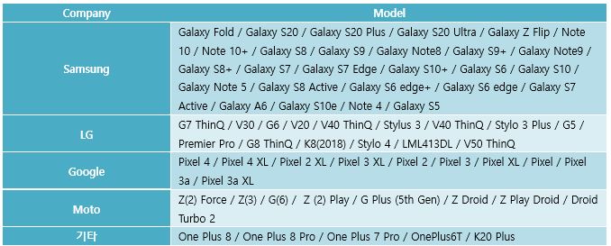 <표: 현대 디지털 키 사용 가능 스마트폰>