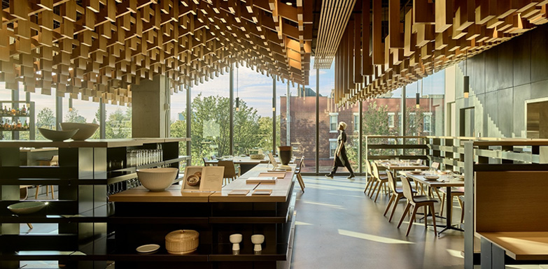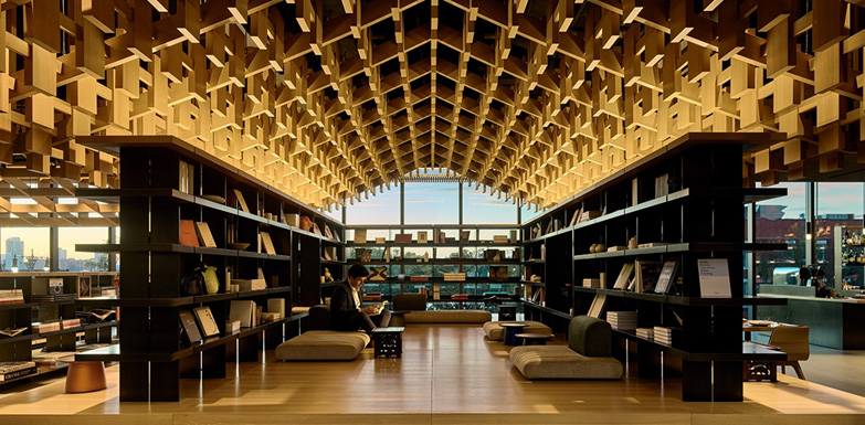 책가도에서 영감을 얻고 선비의 철학을 담아 정갈한 좌식 공간으로 꾸며진 ‘티 파빌리온’은 서가에 둘러싸인 서재이자 다실로, 뉴욕 그 어디에서도 닮은 꼴을 찾기 힘든 유일하고 고유한 분위기를 자랑합니다. 특히, 한국 예술과 문화에 대한 책과 젊은 한국 디자이너들의 공예 작품을 감상하고 한국의 차를 체험할 수 있는 문화 공간으로, 숙련된 전문가가 선보이는 ‘티 세레모니’가 방문객들에게 일상의 환기와 재충전의 시간을 선사합니다.
