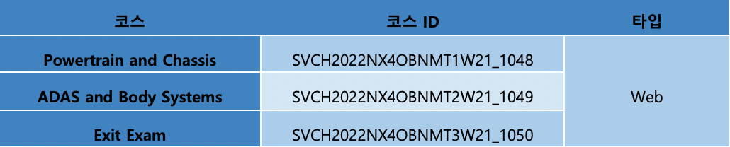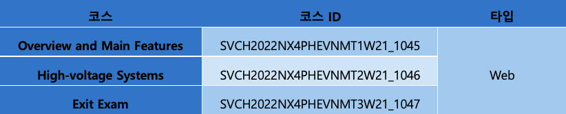 서비스 담당자를 위한 2022MY 싼타크루즈 트레이닝 코스와 2022MY 투싼 트레이닝 코스가 7월 14일과 18일에 각각 종료됩니다. 코스 길이는 30분이며, 수강하기 위해서는 현재 진행 중인 Customer Satisfaction and Thorough Documentation (CS&TD)’를 먼저 수료하시고, 사용 조건(terms and conditions)에 동의해야 합니다.