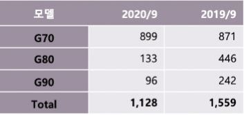 9월 제네시스 판매는 27.6% 줄어든 1,128대를 기록했습니다. 차종별로는 G70 899대, G80 133대, G90 96대가 판매됐습니다. 하지만 주력 모델인 G70 판매가 호조를 보이고 있고, 4분기에 판매가 시작되는 GV80과 올뉴 G80가 기대감이 커지고 있습니다.