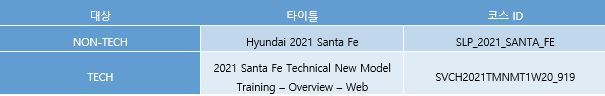 현대자동차는 내년 초 출시 예정인 ‘2021 싼타페’에 대한 딜러 여러분의 이해를 돕기 위해 최근 Hyundai Learning Portal에 신규 코스를 선보였습니다. HLP에서 더욱 업그레이드된 2021 싼타페에 대해 배워보시기 바랍니다.