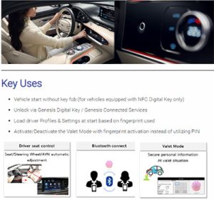 - 차량 시동 시 지문으로 저장된 운전자 프로필 및 세팅 자동 로딩