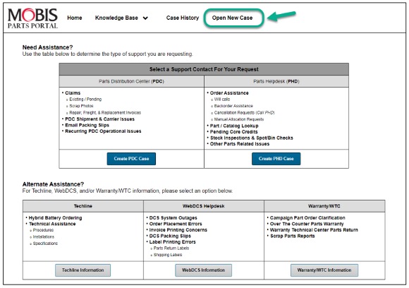 MOBIS Parts America (MPA)는 부품 포털 사이트에 있는 “Open New Case (사진)”의 랜딩 페이지를 업데이트하였습니다.